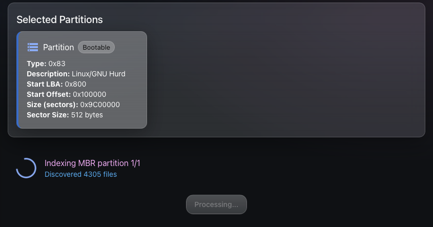 Using the exhume_filesystem API, we can enumerate every file and index them in a SQLite database to perform other actions on them later and display the extracted metadata to the user.
